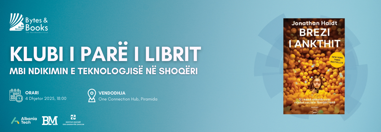 “Bytes & Books” rikthehet sërish! Këtë herë me një diskutim mbi një nga librat më të rëndësishëm dhe më urgjent të viteve të fundit – “Brezi i Ankthit” nga Jonathan...